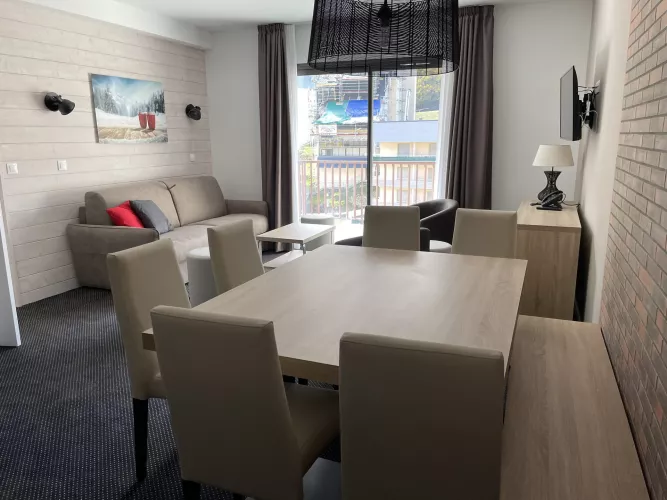 De nombreux services sont inclus: piscine intérieure chauffée avec bain à bulles et bassin pour enfants, salle de sport, salle de jeux, local à skis avec sèche-chaussures individuels et connexion Wi-Fi gratuite.