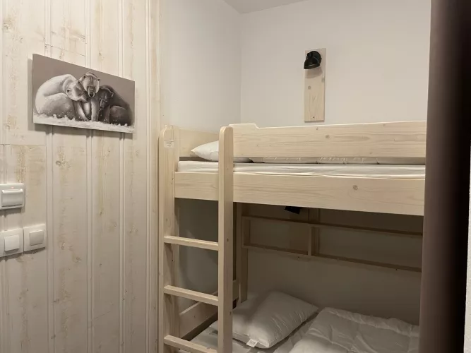 Entrée : coin montagne avec 2 lits superposés en 90.