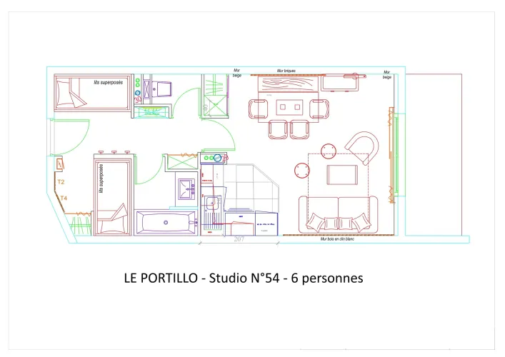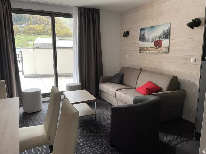 Résidence LE PORTILLO, studio pour 6 personnes, de 38m², exposé Sud, vue pistes, situé au 5°étage avec terrasse.