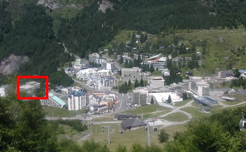 Résidence Christiania n°8 sur plan station, à 300m des pistes, ascenseur, accès à la résidence par des escaliers. Commerces à 250m.