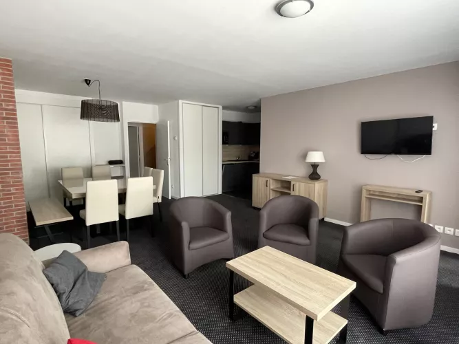 Séjour : canapé lit 2 places en 160, télévision.