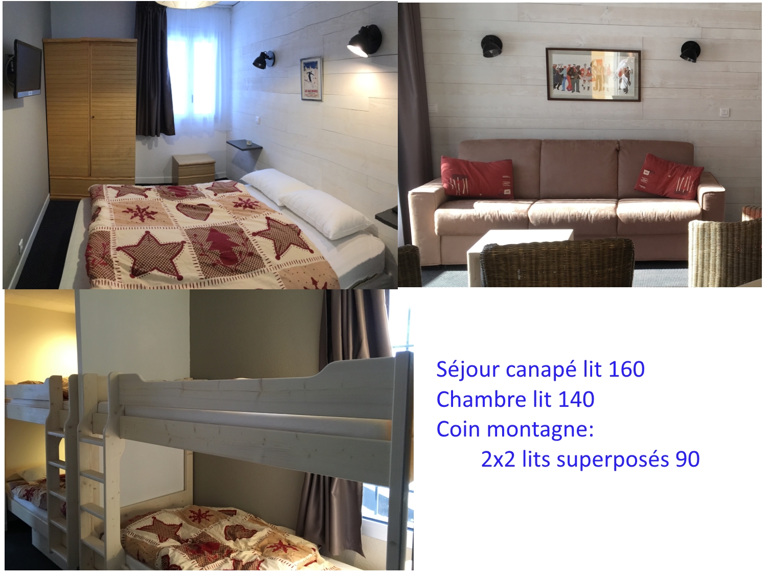 Séjour avec cuisine équipée, coin cabine canapé 2 lits superposés,