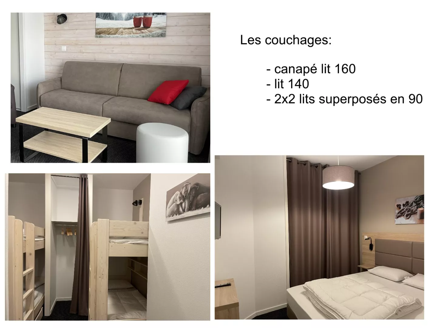 Résidence LE PORTILLO avec piscine, studio cabine pour 6/8 personnes, de 65m², exposé Sud-Ouest, vue pistes et station, situé au 1°étage avec terrasse.