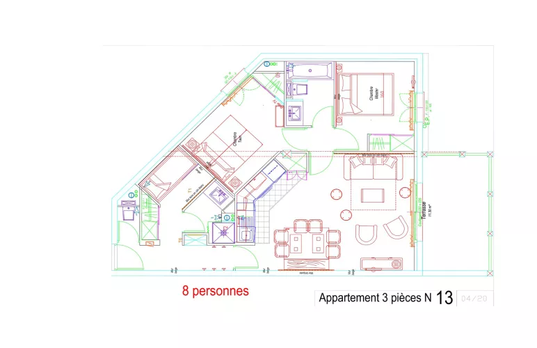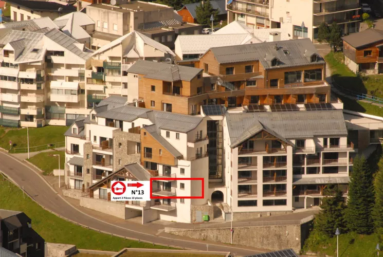 Résidence LE PORTILLO avec piscine, appartement 3 pièces pour 6/8 personnes, de 67m², exposé Sud-Ouest, vue pistes et station, situé 1°étage avec terrasse.