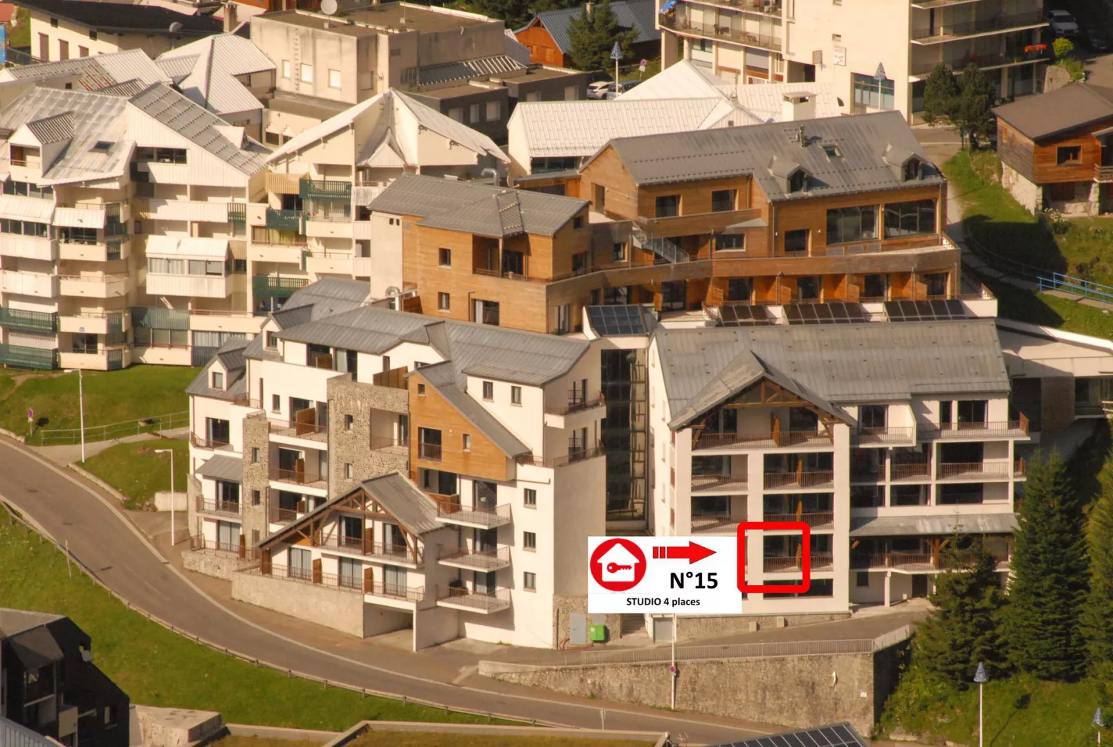 Résidence LE PORTILLO avec piscine, studio pour 4 personnes, de 29 m², exposé Sud-Ouest, vue pistes et montagne, situé au 1°étage avec terrasse.