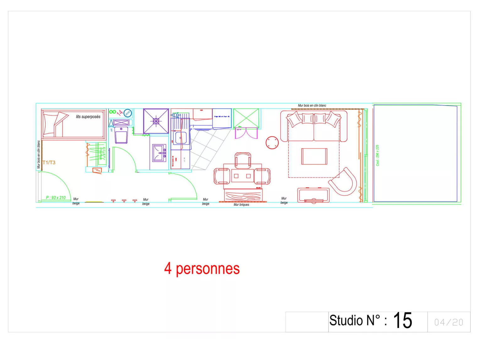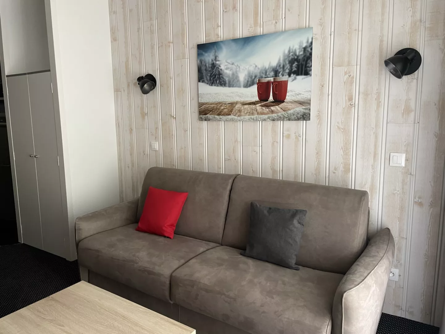 Entrée : coin montagne avec 2 lits superposés en 90.
