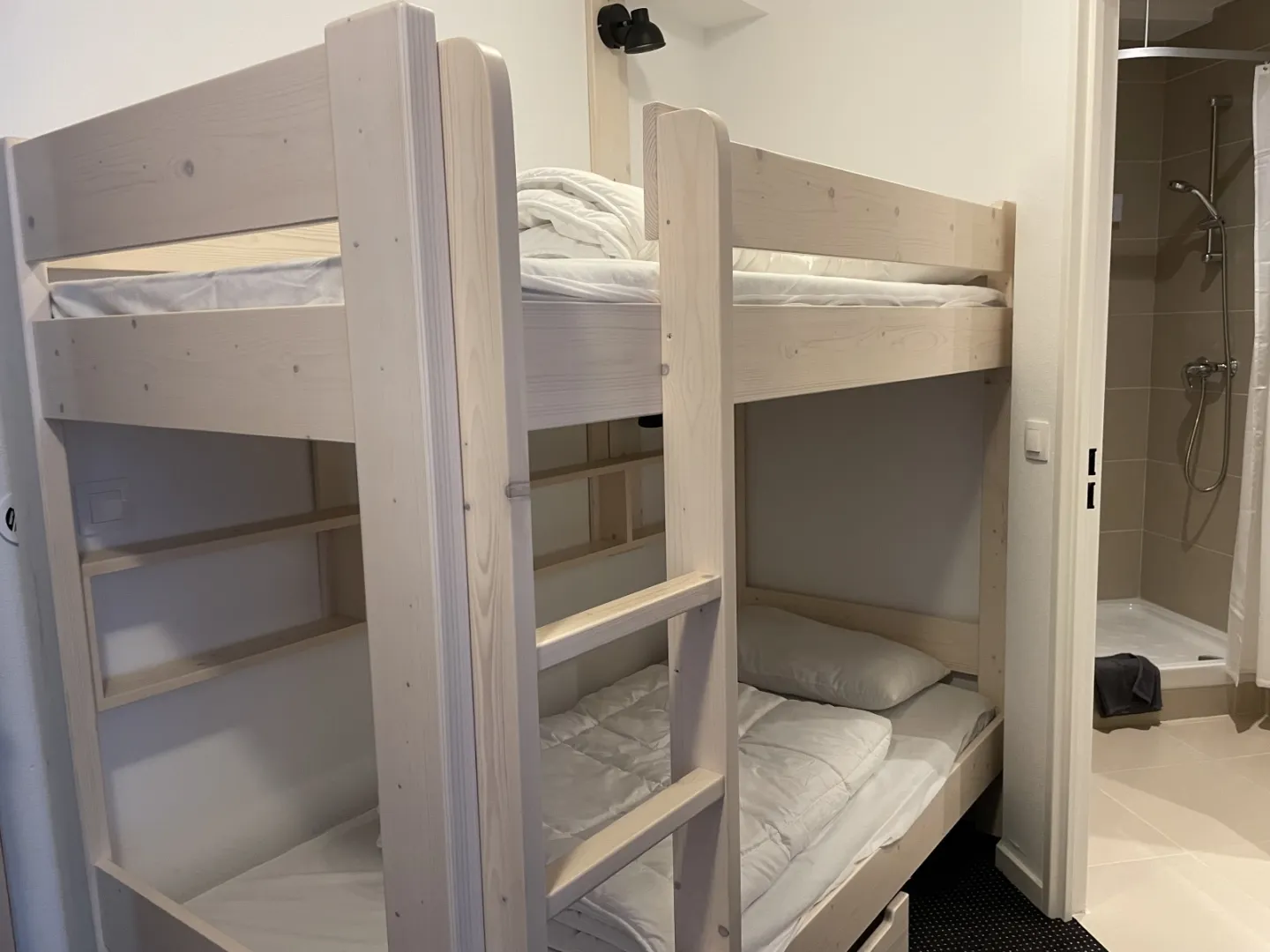 Entrée : coin montagne avec 2 lits superposés en 90.