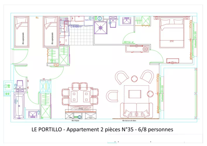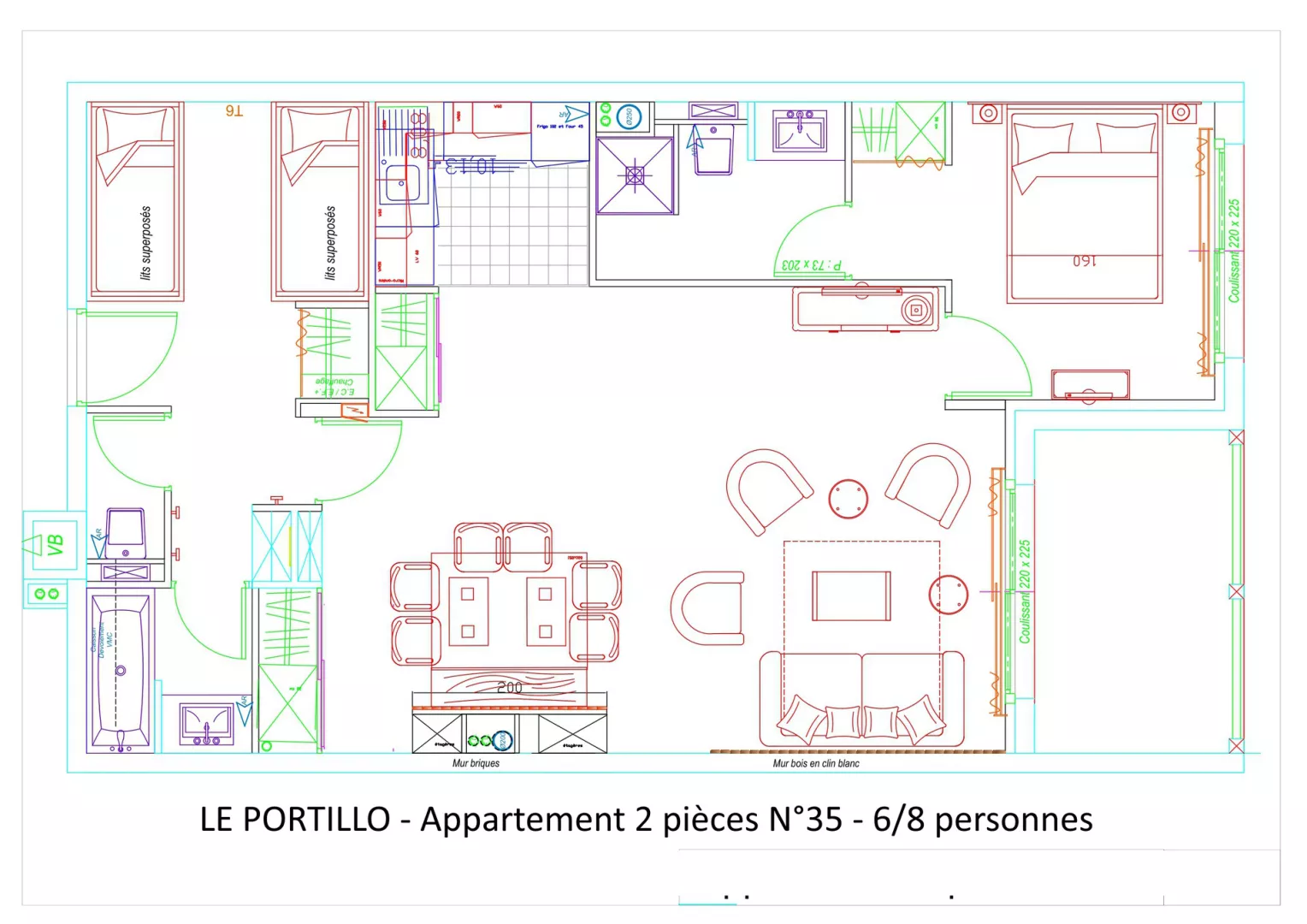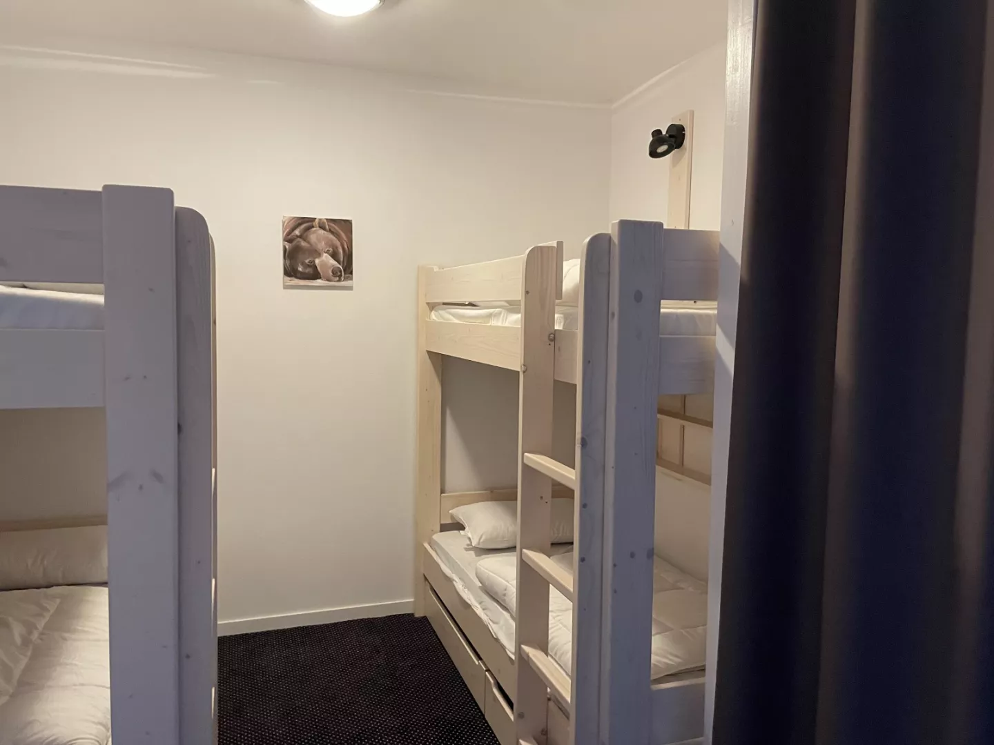 Entrée : coin montagne avec 2x2 lits superposés en 90.