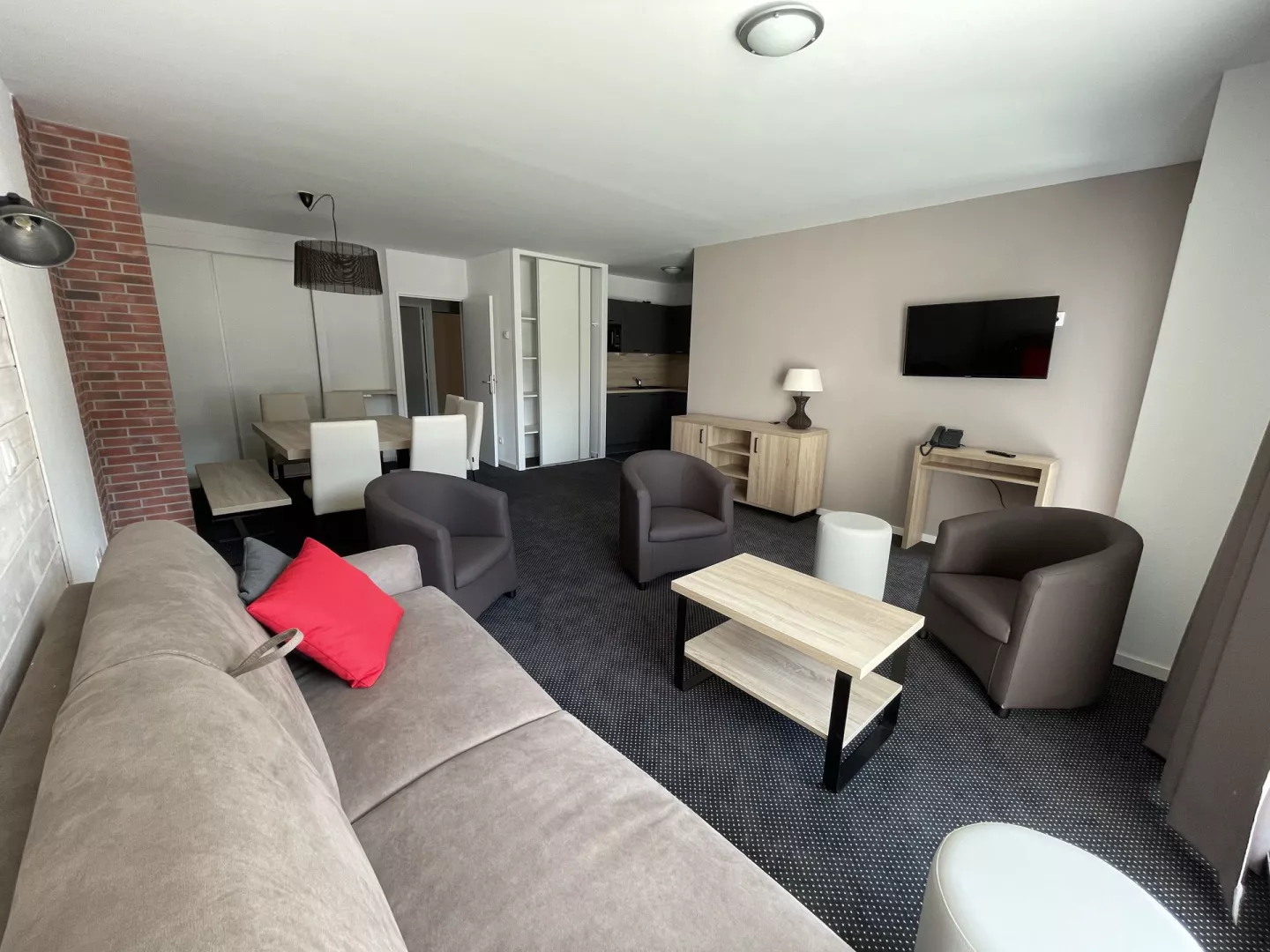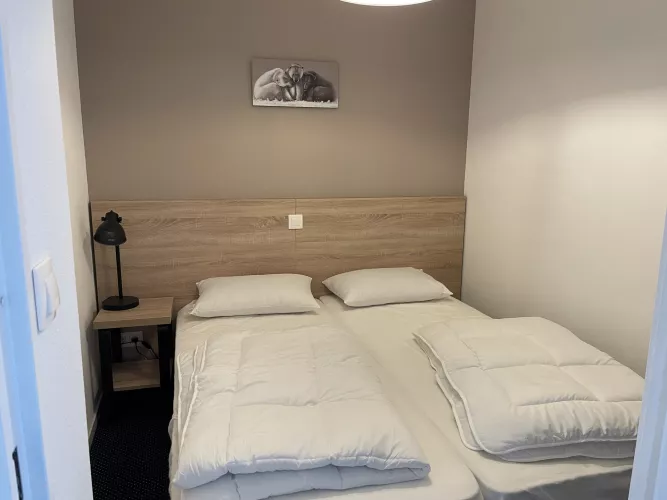 Chambre : lit 160, télévision avec salle d'eau: douche, lavabo et WC.