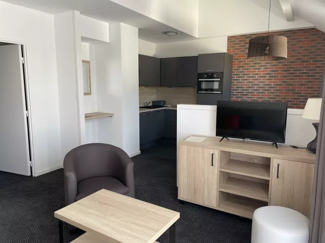Séjour : canapé lit 2 places en 160, télévision.