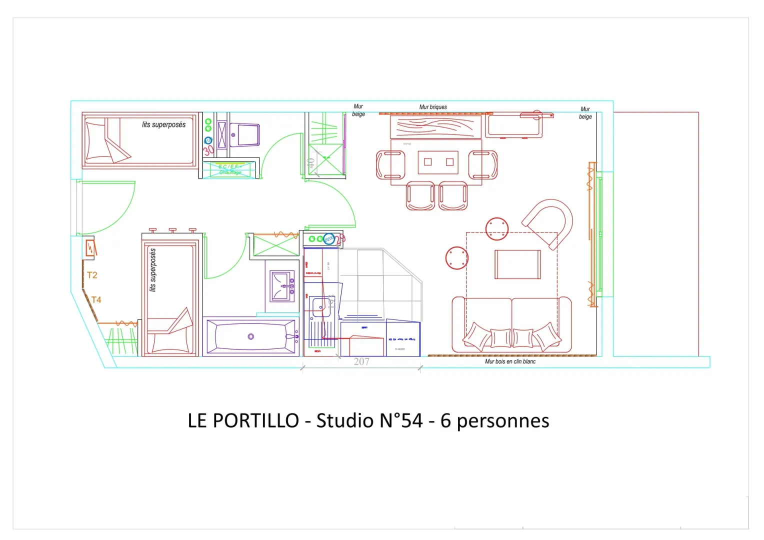 Résidence LE PORTILLO, studio pour 6 personnes, de 38m², exposé Sud, vue pistes, situé au 5°étage avec terrasse.