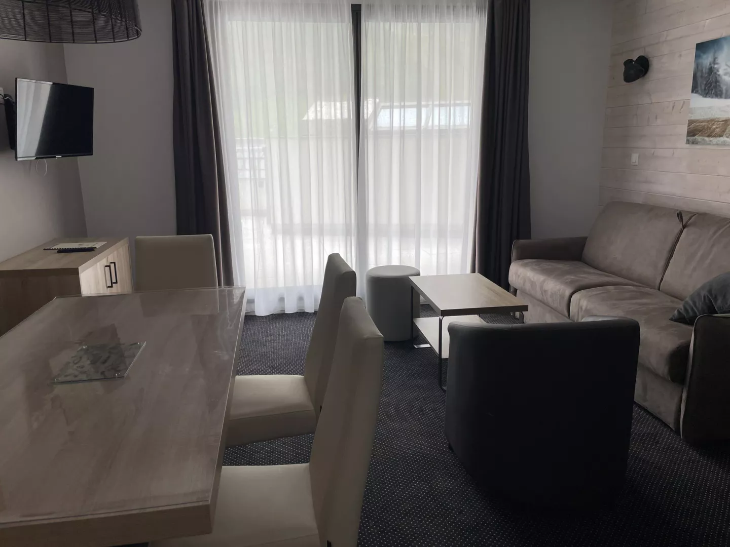 Séjour canapé-lit 2 places en 160, télévision.