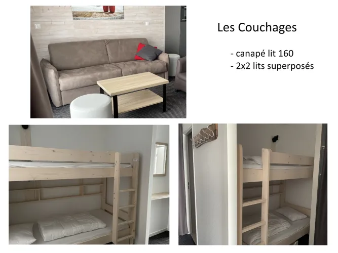 Entrée : 2 coins montagne avec 2 lits superposés en 90.
