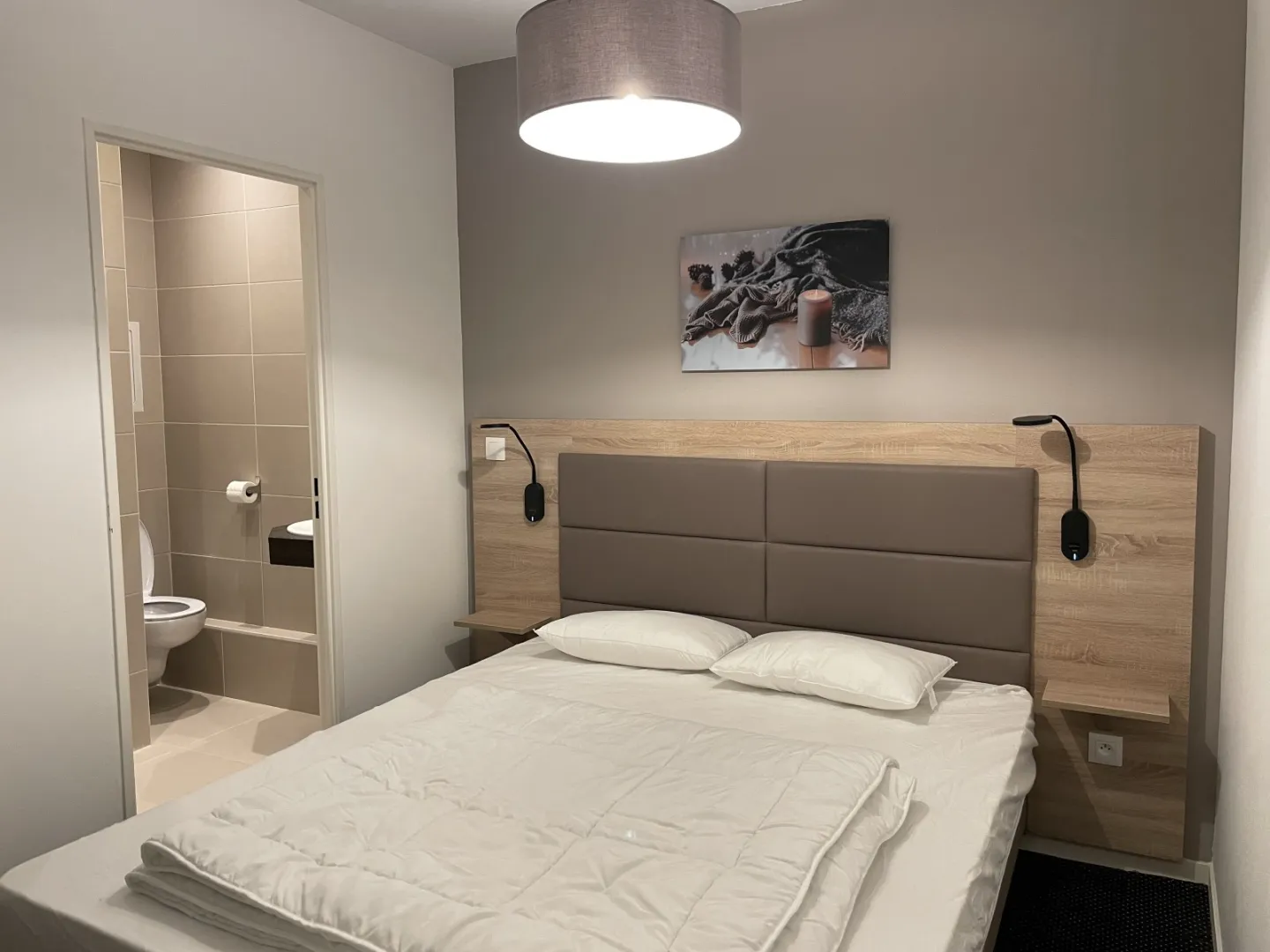 Cabine: chambre sans fenêtre avec 1 lit 160, télévision et salle d'eau : douche, lavabo et WC.