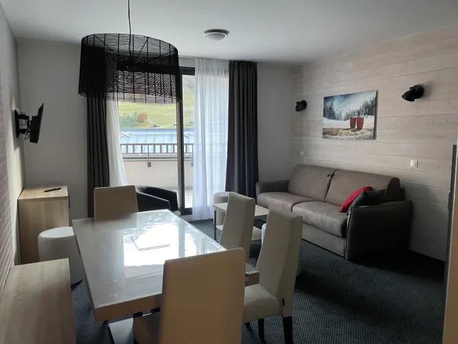 Résidence LE PORTILLO avec piscine, studio cabine pour 6/7 personnes, de 50m², exposé Sud, vue pistes, situé au 5°étage avec terrasse.