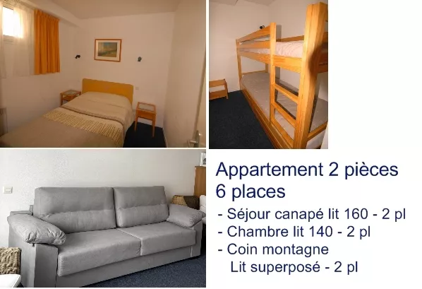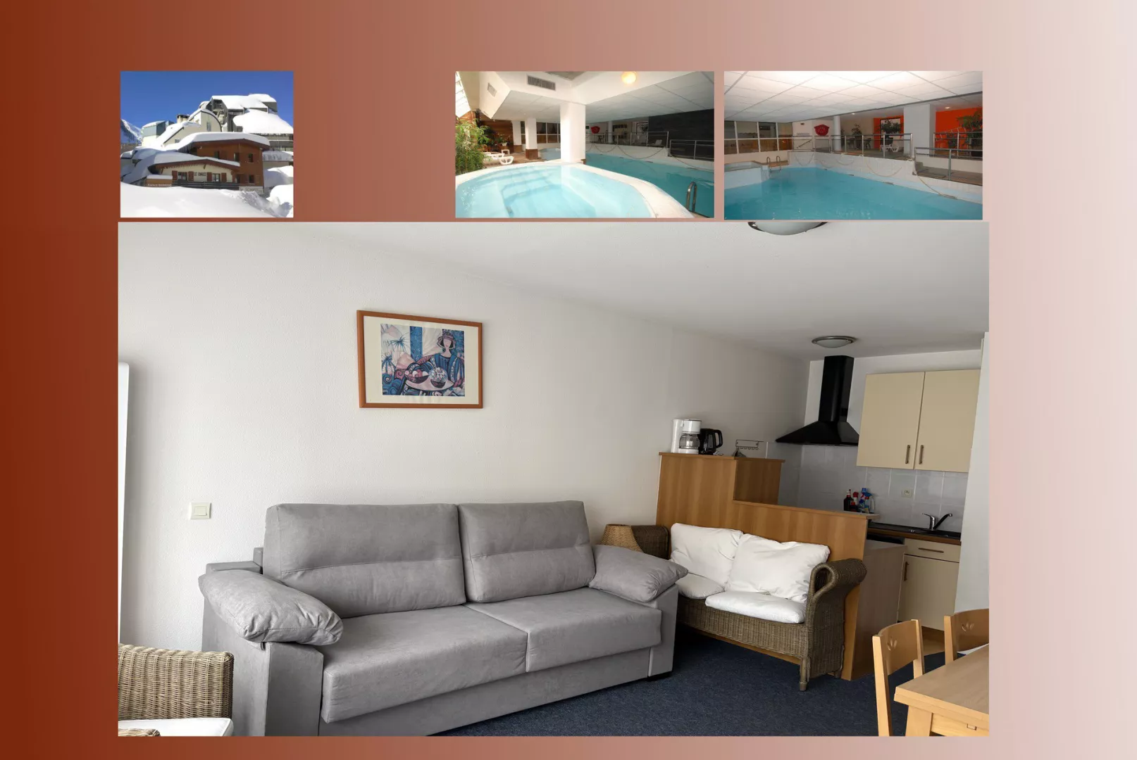 Résidence LE CHALET avec piscine, appartement 2 pièces pour 6 personnes, 3°étage, vue pistes, 47m², exposé Sud-Ouest, placard à ski chauffant, chauffage électrique.