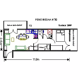 Résidence PENE MEDAA, appartement 2 pièces catégorie confort pour 6 personnes, 2°étage, vue pistes et station, 35m², exposé sud-ouest, balcon, chauffage collectif.