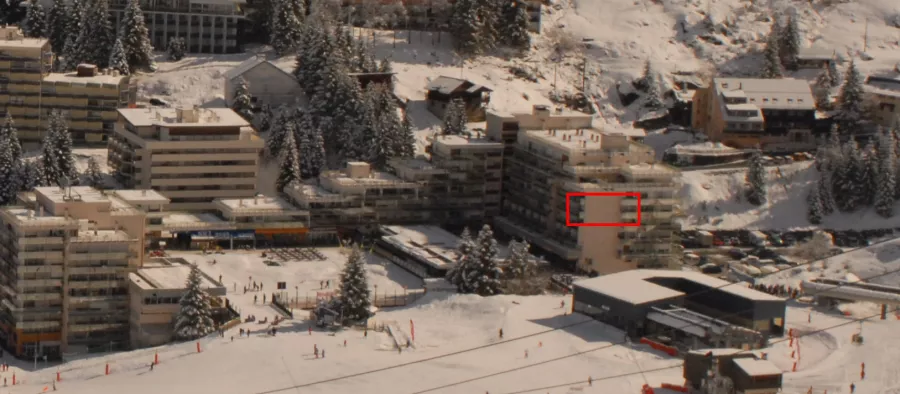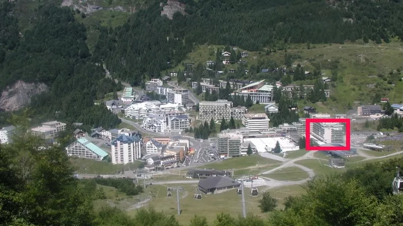 Résidence Pene-Medaa n°24 sur le plan de la station, ascenseur Accès à la résidence par des escaliers l'hiver. Commerces à 100m et pistes à 50m.
