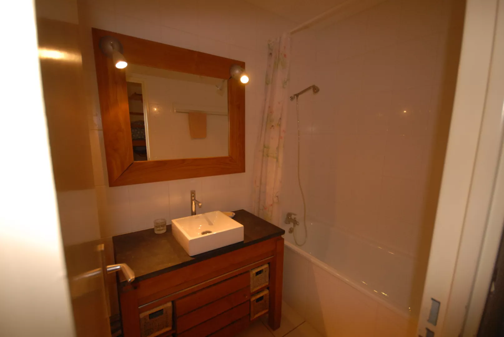 Salle de bains avec lavabo, baignoire. WC indépendants.