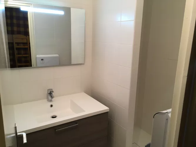 Alcôve 4 lits superposés, salle de bains avec lavabo, douche et WC indépendants.
