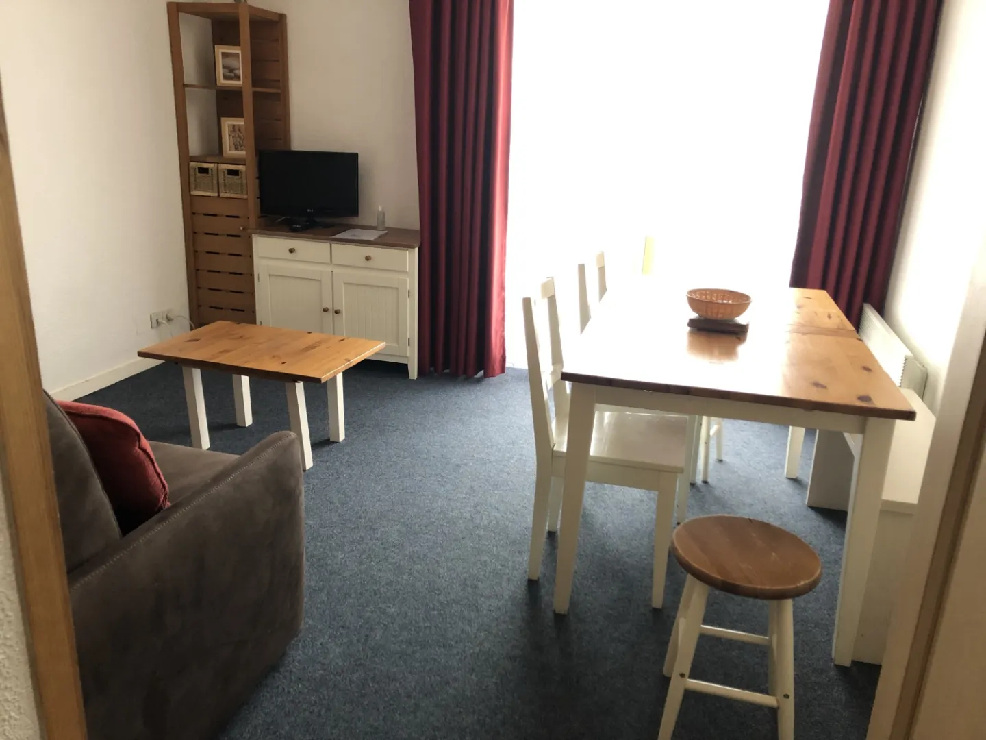 Séjour cuisine équipée avec canapé lit pour 2 pers , balcon.